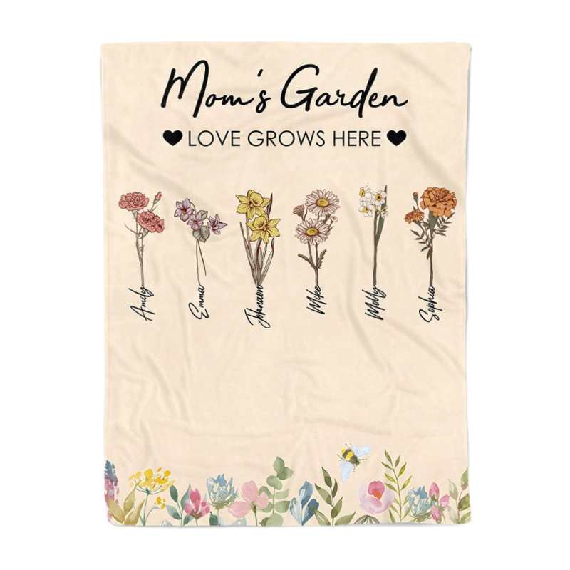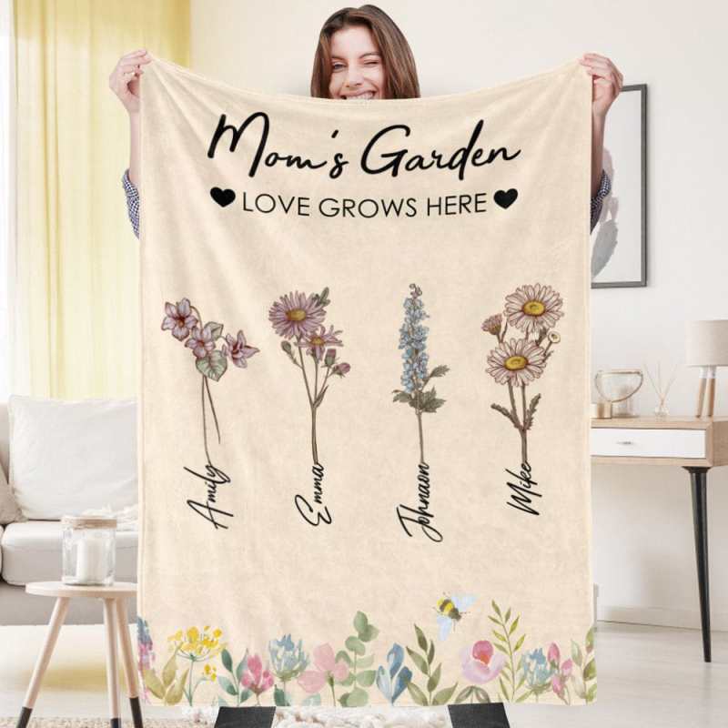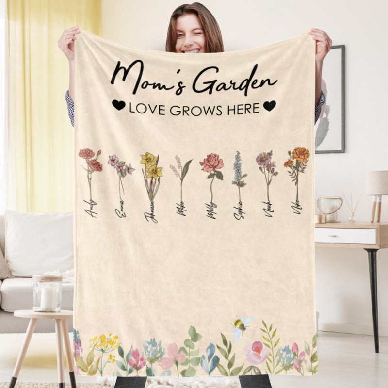 Custom Birthday Flower Blanket Personalized Name Blanket Gift for Grandma