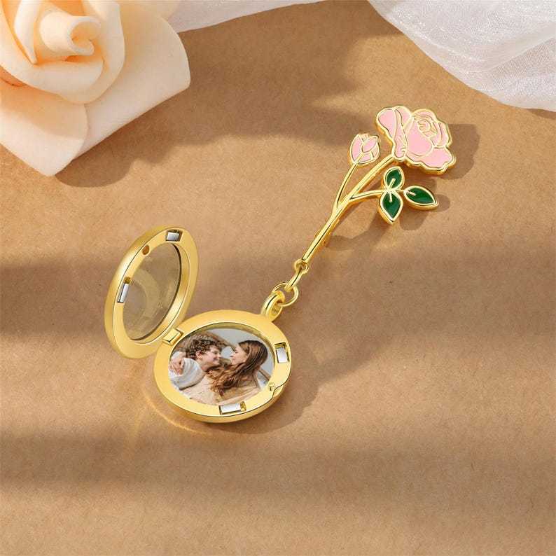 Custom Photo Brooch, Personalized Birth Flower Pin with Photo, Pins For Women Mum Mom Mother's Gift
