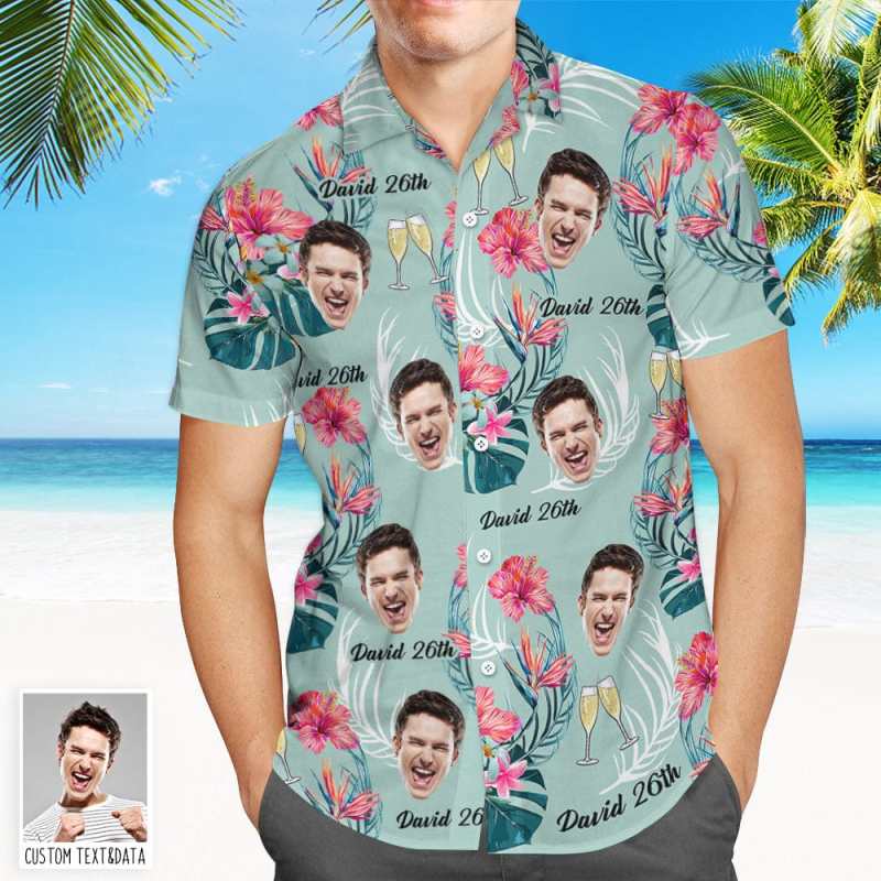 Custom Photo Hawaiian Shirt Personalized Age Name Hawaiian Shirt Gift For Birthday - CustWitAU