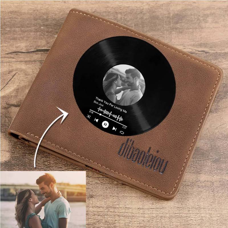 Custom Photo Wallet with Spotify Music Gift for Him