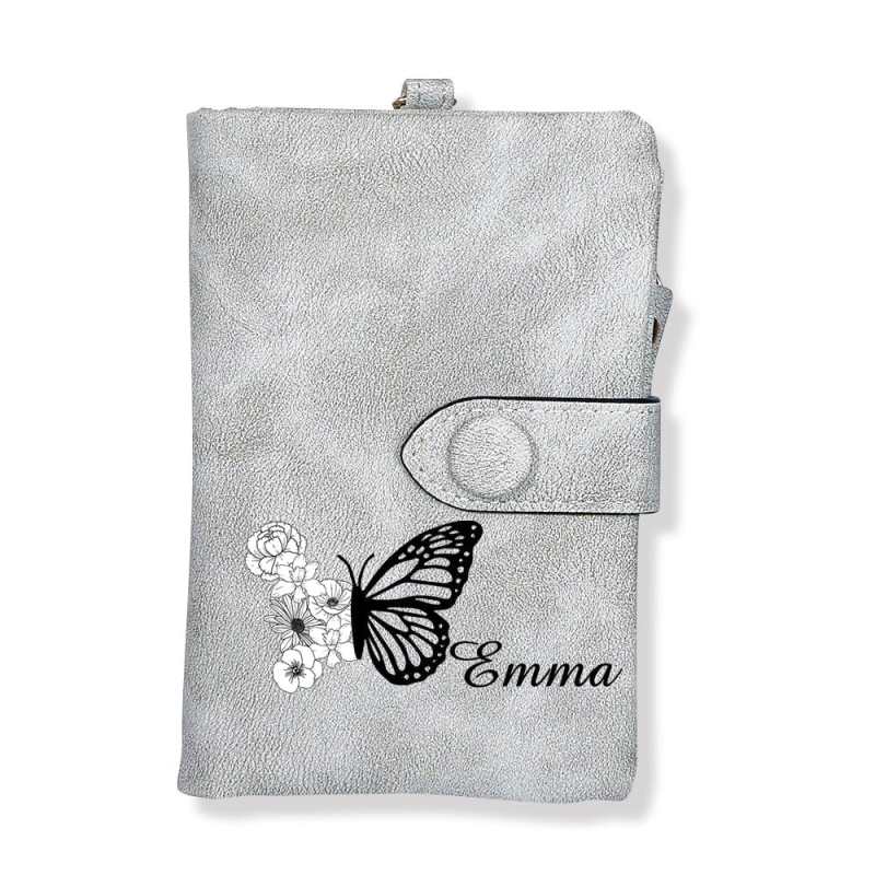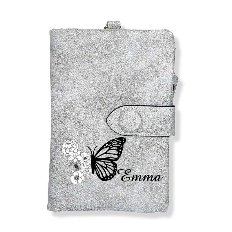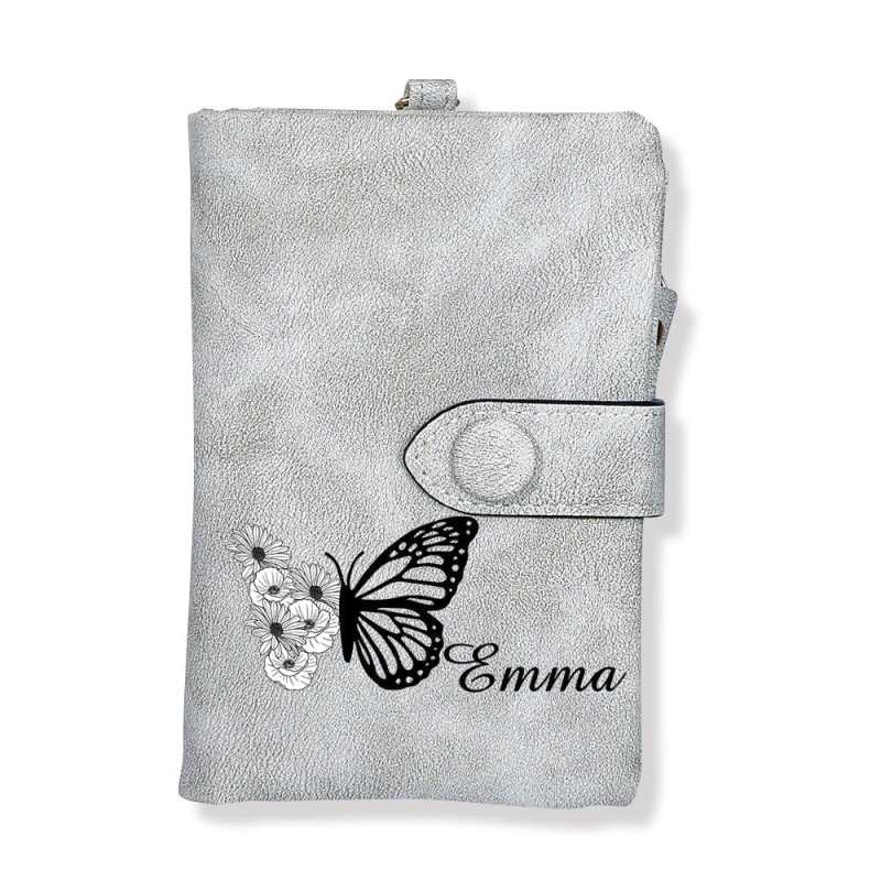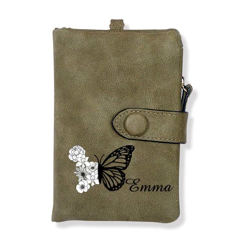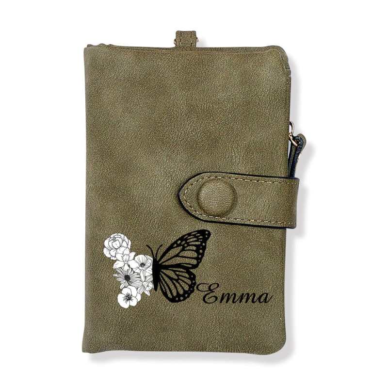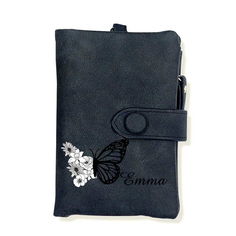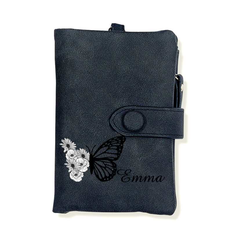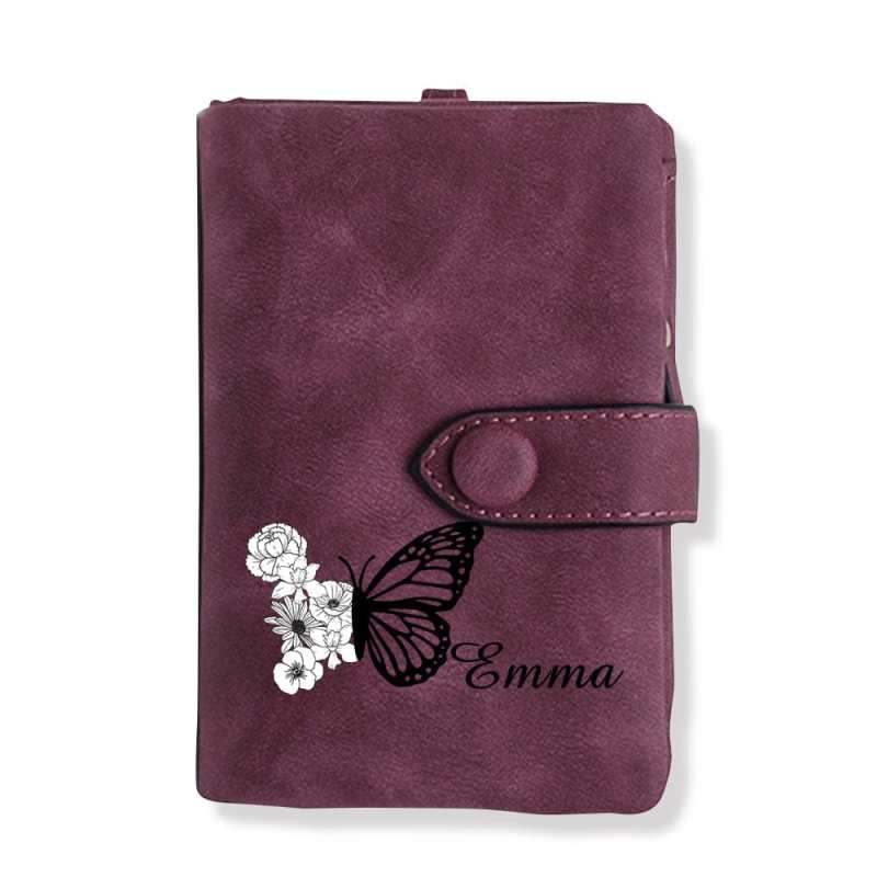 Custom Tri-Fold Butterfly Birth Flower Leather Wallet with Coin Holder Personalized Mother's Day Gift for Woman